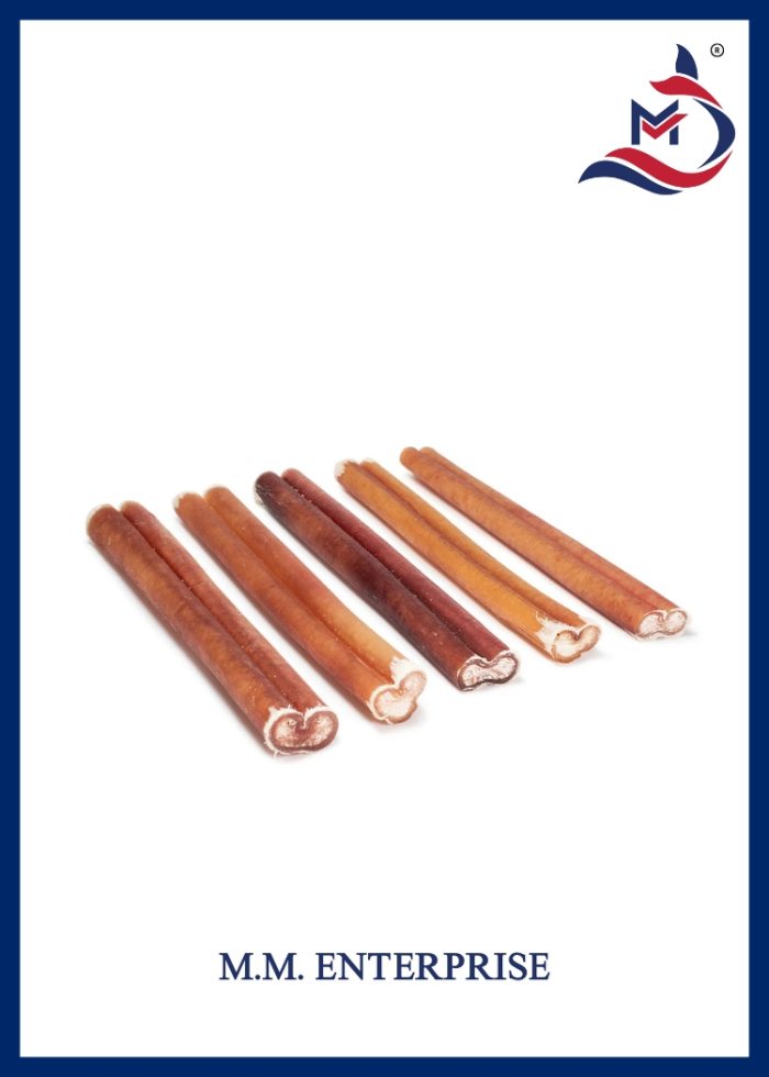 M.M. Enterprise provides carefully cleaned and processed bully sticks, ensuring safety, hygiene, and consistent quality. Available in various sizes and thicknesses, these chews cater to different dog breeds and chewing preferences.